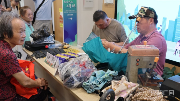 “麻烦帮我修修这双鞋”“师傅,伞骨歪了还能修吗”……在一楼大厅正在举行的一场“便民集市”上,捏着针线的张师傅手上功夫不停:“很多老人衣服破个洞没处补也舍不得扔,现在我们每月来一次,他们省心,我们开心。”综合为老服务中心每月以“室内集市”形式,售卖崇明基地平价蔬菜瓜果,提供理发、修鞋、修伞、缝补衣服等生活服务,增添“生活感”“烟火气”。