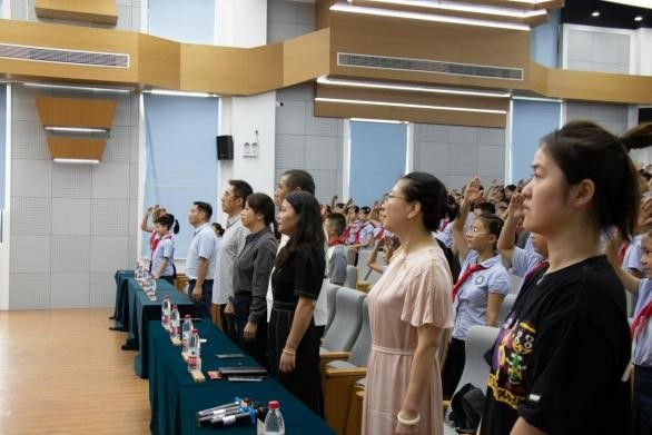 开学典礼在庄严的国歌声中拉开帷幕。随后同学们纷纷上台分享了自己的暑假研学故事,孩子们用稚嫩却坚定的声音,传递文化、诉说历史、表达热爱。
