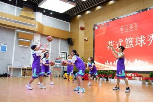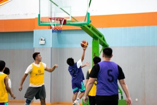 随后,学校邀请的校外篮球俱乐部的四名教练,与学校六名学生组成两支“2名教练+3名学生”的队伍,上演了一场精彩的“丁BA”表演赛。