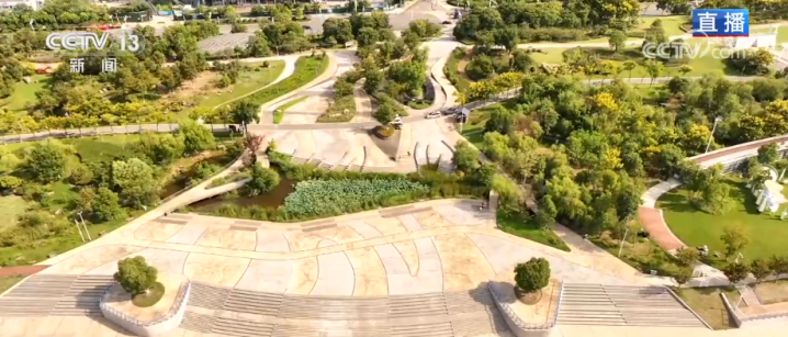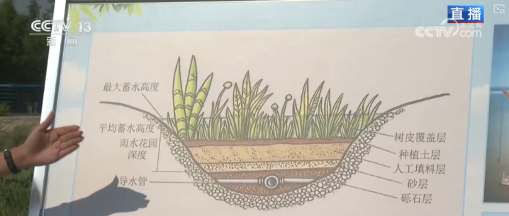 除了透水铺装之外,江滩还利用大量的下沉式的生态草溪和雨水花园的设计,让雨水能够得到充分的利用。比如这片湿地区域,芦苇荷花相映成趣,它的用水可不是自来水,而是透水铺装下渗的雨水,还有顺着草溪湿地汇入的雨水。