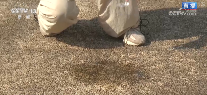 做个小实验,把手中这瓶水倒在地面上,水很快就渗进了地砖下,消解速度非常快,就像是把水“喝”进去了。在下雨天,这样的透水铺装就能够帮助雨水快速下渗。