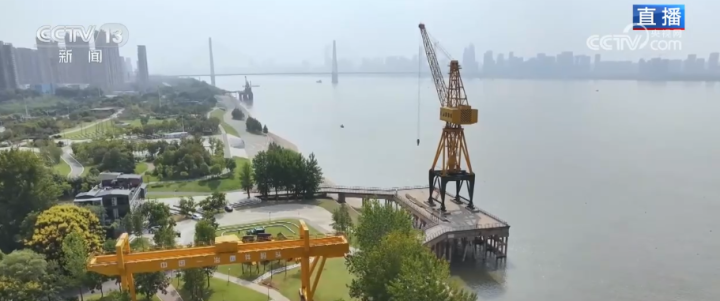 但大家或许难以想象,就在十多年前,这里还是一条忙碌的生产岸线。如今,在满目的绿色中只能从江边伫立的起重机来感受青山老工业基地的印记。在交通不便的年代,江滩沿线的码头承担着矿石、钢铁运输任务。从老照片中,可以看到当年这里砂石遍地、吊机轰鸣的繁忙景象。在经过十多年的系统化治理后,如今,再从同样角度去拍摄这片江滩,江水仍在奔流,起重机已经成为游客游览的景点,江滩变绿了,也变美了。