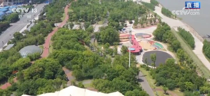 置身武汉市青山区的青山江滩,能感受到青山绿水、江滩如画。关于青山江滩的变化,可以用三个关键词来概况。这第一个关键词——“绿色”。绵延长江畔的青山江滩全长7.5公里,绿化率高达80%,从空中俯瞰,宛如一条沿着长江铺展的绿色“地毯”。青山江滩采取的是缓坡设计,相对于其他的长江堤防,它的坡度更缓,与之相对的绿化面积也就更多。经过精心规划设计,这里是四季有花、四季常绿。据统计,这片江滩每年释放氧气2400吨,相当于是在城市中心栽种了一片20万棵树组成的森林,就像为城市安装了一座天然氧吧。